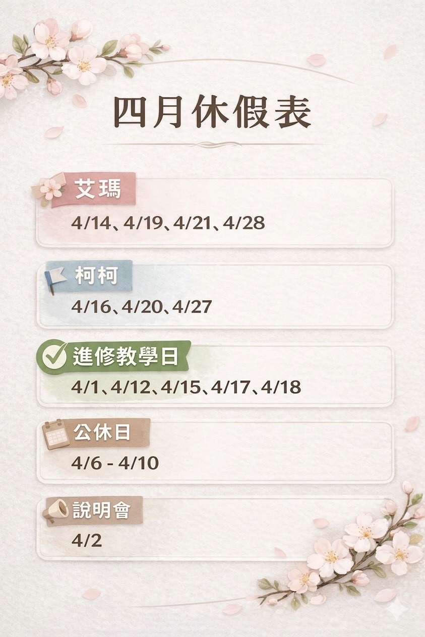 詳細休假與進修日請見圖片